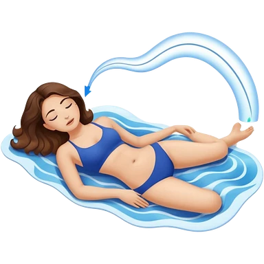 Emoji of a woman lying down, getting a body cavitation fat burner treatment on her abdomen, with blue waves showing vibration, emoji