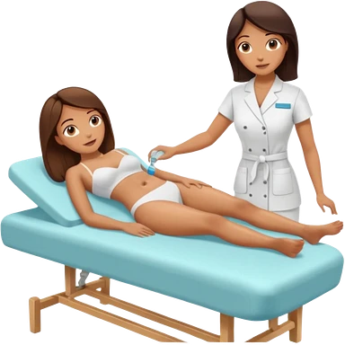 Emoji of a woman lying down on a spa bed while another woman in spa uniform applies a cavitation fat-burning treatment on her abdomen, emoji