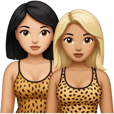 Tan Latina woman with long black hair chubby and dark skinned woman with long blonde hair slim thick in cheetah top sexy emoji