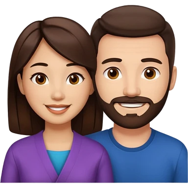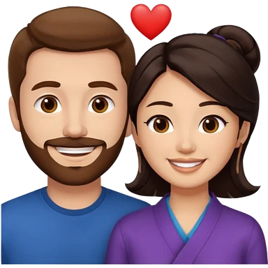 White man with brown hair and brown facial hair in love with an Asian woman with black hair emoji