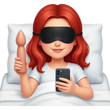 Dildo Red hair girl eye mask on head in bed looking at phone emoji