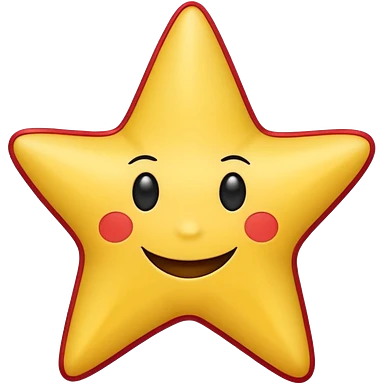 A friendly, cartoon-style yellow star with a cheerful, smiling face. The star should have smooth, rounded edges and a soft red outline along its right side and bottom edge. Its expression includes two small curved black eyes, a small curved eyebrow, and a wide, friendly black smile emoji