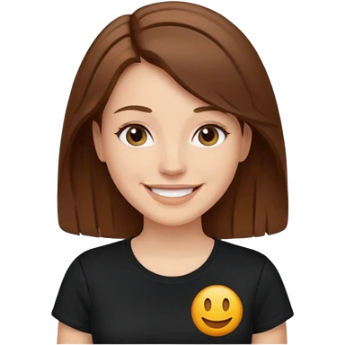 white woman emoji. Black t-shirt. Short and bround hair. smiling. transparent background. reference attached. emoji