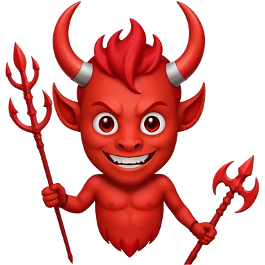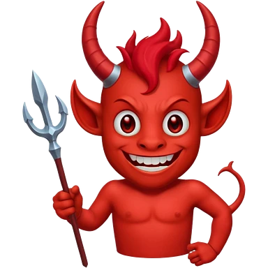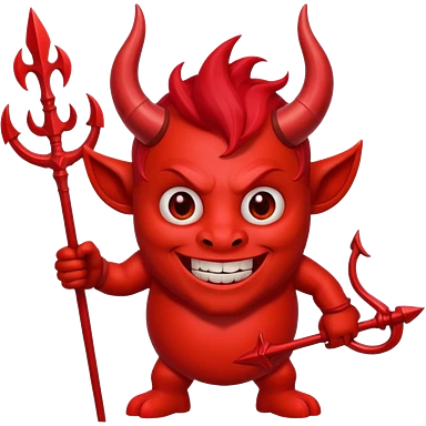 Red devil with horns and trident, grinning mischievous emoji