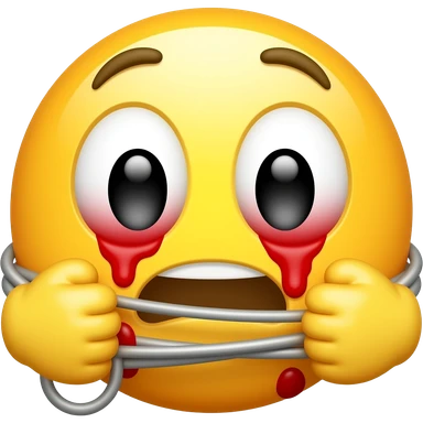 personnage emoji jaune qui s’étrangle avec ses main et est très rouge avec de grand yeux injecté de sang emoji