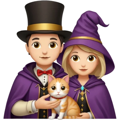 magician couple and their pet cat emoji