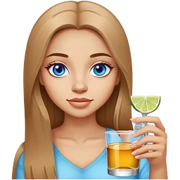 tan girl, long light brown straight hair, blue eyes, holding a shot with lime emoji
