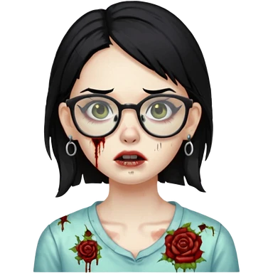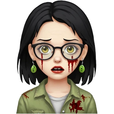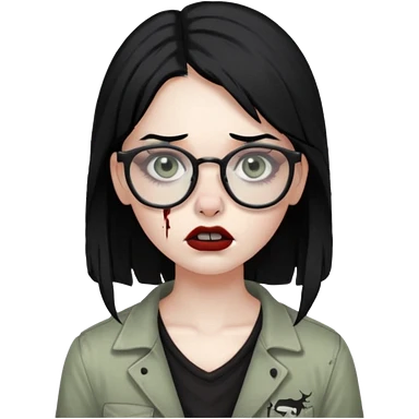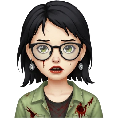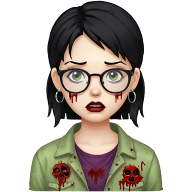 girl zombie with black hair nose piercing with glasses emoji