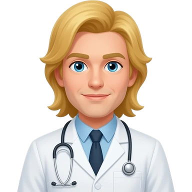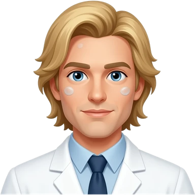 male, lab scientist, blonde, pony tail, long hair, no facial hair emoji