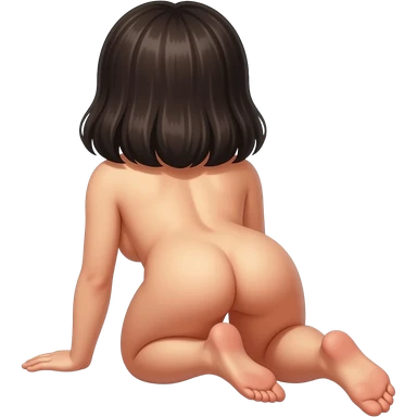naked skinny chinese woman, on all four, leaning forward, view from directly behind, facing away emoji