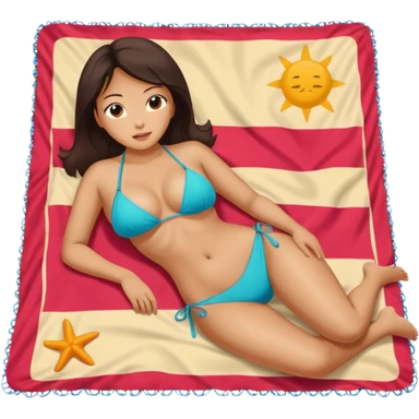 Naked chinese woman at the beach full body laying on a blanket emoji