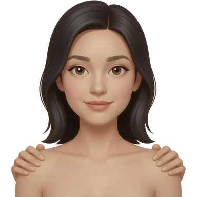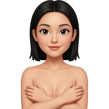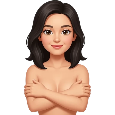 Naked woman, skinny, gigantic breasts, side view full body emoji