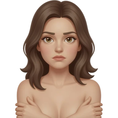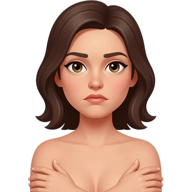 Naked woman, skinny, +gigantic breasts, side view full body emoji