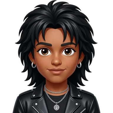 Un chico rockero Moreno de cabello negro y largo estilo 80s emoji