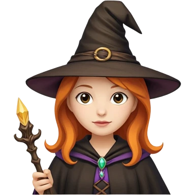 Connie wearing witch hat and wand emoji
