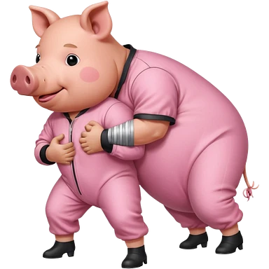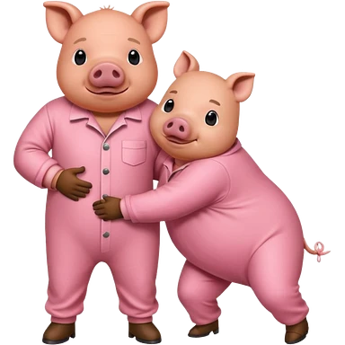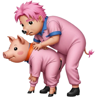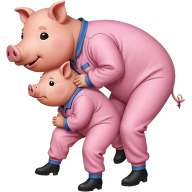 A pig in a prison jumpsuit getting humped by a larger hog emoji