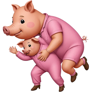A pig bent over in a prison jumpsuit getting humped by a larger hog emoji