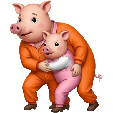 A pig bent over in a orange prison jumpsuit getting humped by a larger hog emoji