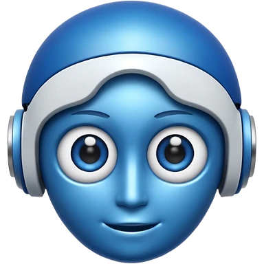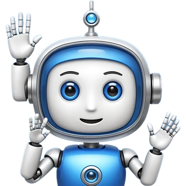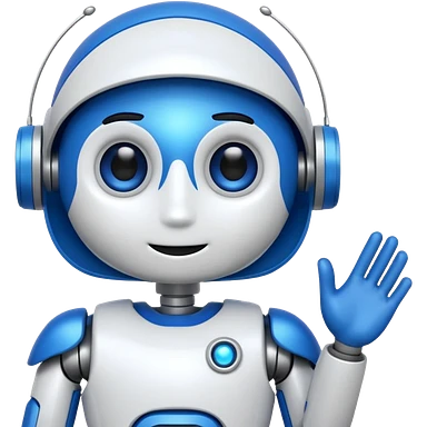 robo azul e branco sorrindo e piscando com um olho só, fazendo um sinal de posito com uma das mãos emoji