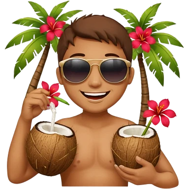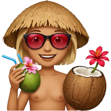coconut drink with red flowers and summer vibe, with sunglasses and smiling emoji