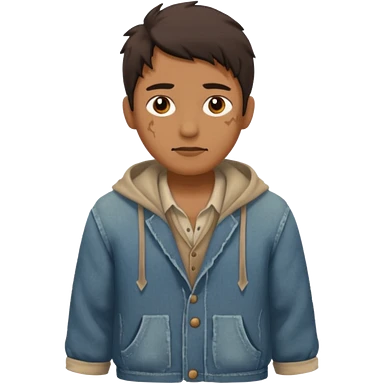 Create an emoji that shows a person wearing torn clothes with visible dirt marks and an empty cup. emoji