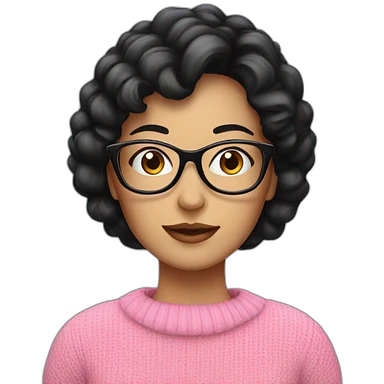 Lady with black hair, glasses, wearing pink jumper, emoji