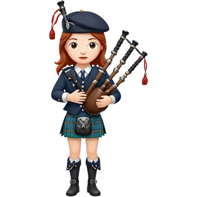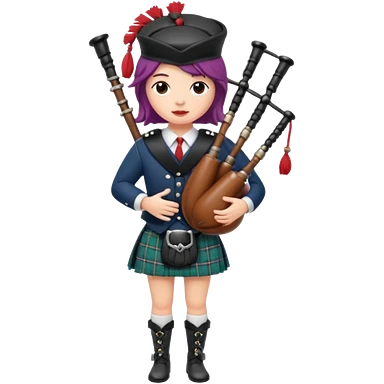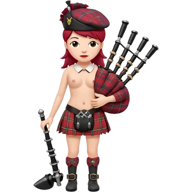 A Scottish styled vagina with legs and a face carrying bagpipes emoji