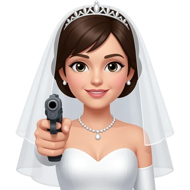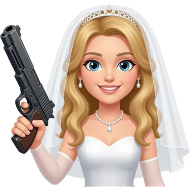 bride holding a big gun looking like a crazy maniac with runny mascara emoji