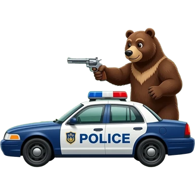Urso na floresta no carro da polícia com revolver dando tiro em todo mundo e um sange no chao emoji