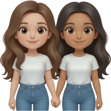 A white skin, long haired brunette and a white skin dark haired best friends, girls, full body emoji