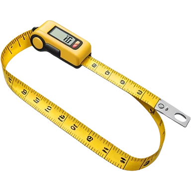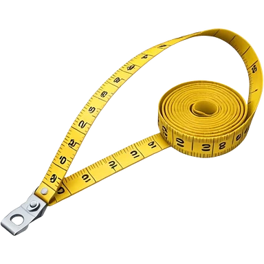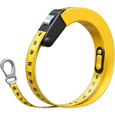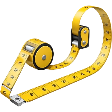 A 3D emoji-style yellow measuring tape, rolled in a spiral with black markings, realistic light and shadow, minimalistic background, vector-like clean design. emoji