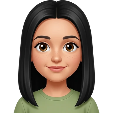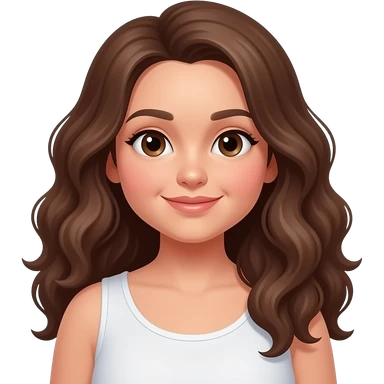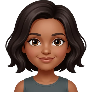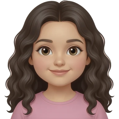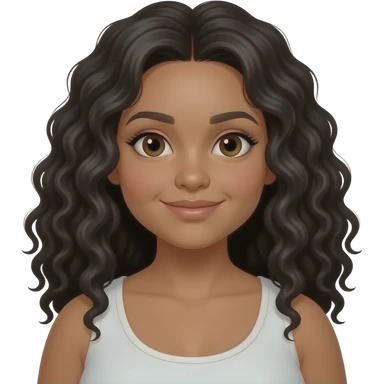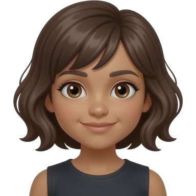 Una niña piel trigueña cara algo redonda cabello ondulado corto color entre color café y negro ojos cafés y cabello en capas y mediano emoji