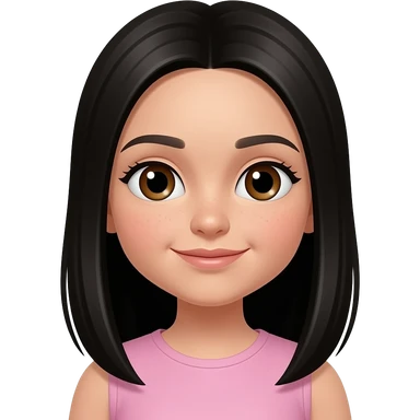 Una niña de piel trigueña clara con hoyuelos en las mejillas y ojos algo grandesitos color cafés cabello largo liso color negro emoji