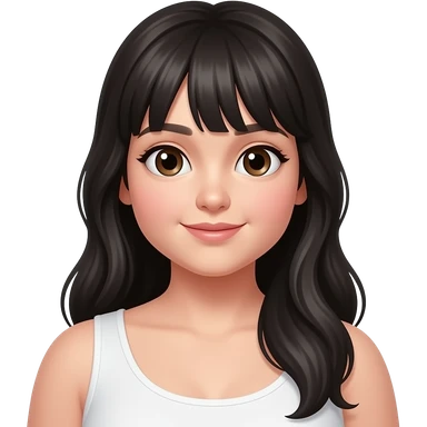Una niña color de piel blanquita y de cuerpo rellenita y de la cara también cabello colocho largo negro emoji