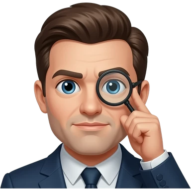 3D-rendered emoji of a yellow face with a furrowed brow and a slight frown, wearing a single glass monocle over one eye. High-detail Apple style, soft lighting, professional graphic design, solid black background. emoji
