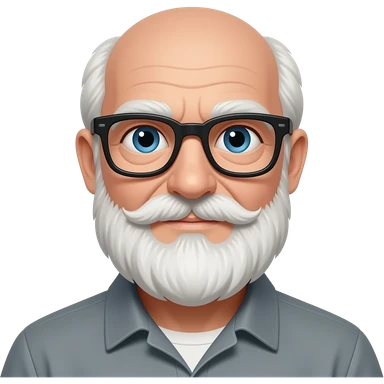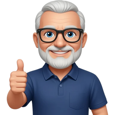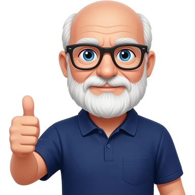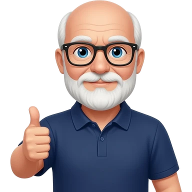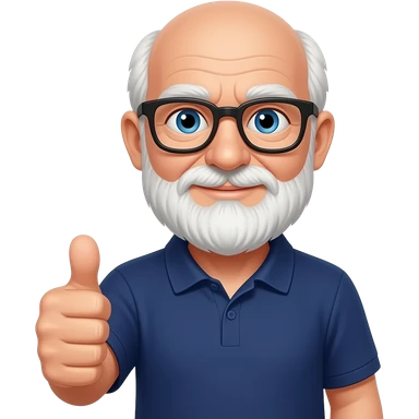 old bald man with white beard, blue eyes, black glasses, thumbs up, navy blue polo shirt emoji