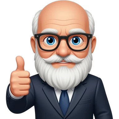 old bald man with white beard, blue eyes, black glasses, thumbs up emoji