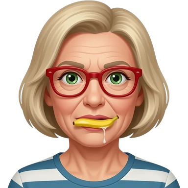 Lizanie banana przez starszą kobietę i szczuplejszej twarzy na patyku w kolorze różowym językiem włosy blond zielone oczy i okulary w kolorze czerwonym, kapiąca ślina emoji