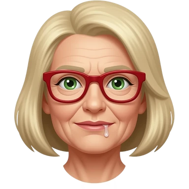 Ssanie przez starszą kobietę i szczuplejszej twarzy językiem włosy blond zielone oczy i okulary w kolorze czerwonym, kapiąca ślina emoji