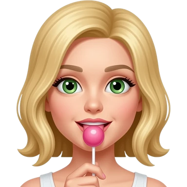 Lizanie cukierka językiem włosy blond zielone oczy emoji