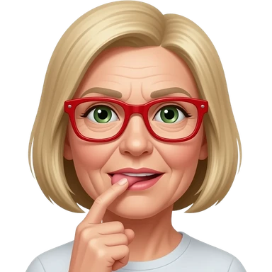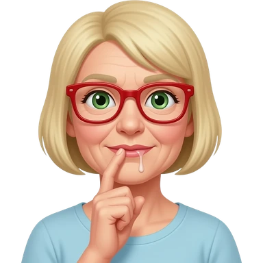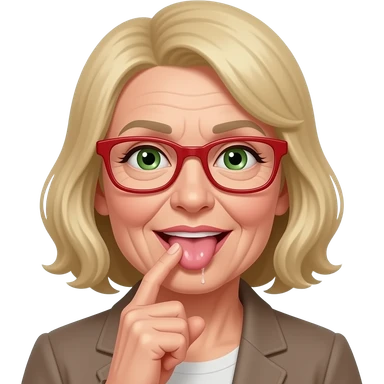 Ssanie palca przez starszą kobietę i szczuplejszej twarzy językiem włosy blond zielone oczy i okulary w kolorze czerwonym, opryszczka na dolnej wardze emoji