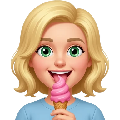 Lizanie loda w kolorze różowym językiem włosy blond zielone oczy emoji