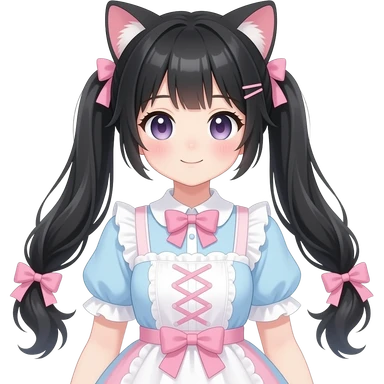 shiny blushing cute kawaii pastel lolita anime catgirl pigtails trending style cottagecore black hair emoji