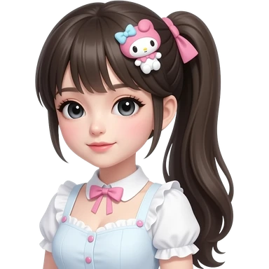 Gyaru makeup, my melody hairclip, cutecore, black doll eyes, Doll, big chest, white skin, with side ponytail emoji
