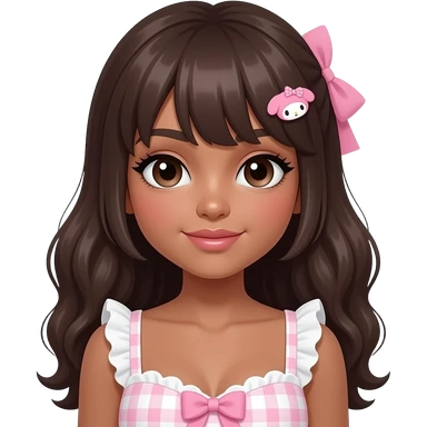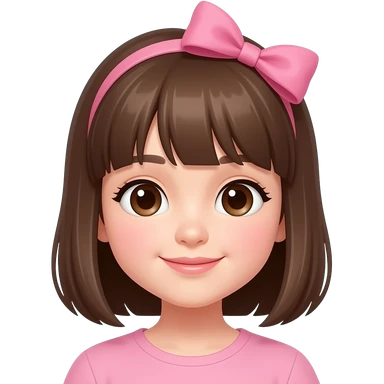 cute girl with brown shoulder length straight hair and pink bow emoji