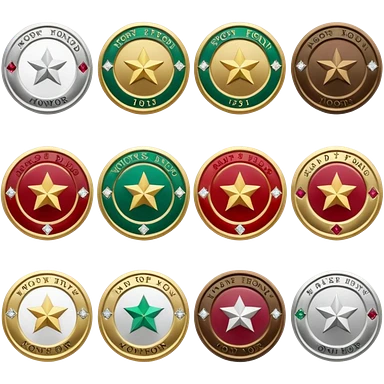 создай 6 значков для твича где 1 значок - базовый, 2 - 2 месяца подписки, 3 - 3 месяца подписки, 4 - 6 месяцев подписки, 5 - 9 месяцев подписки, 6 - год подписки, сделай это в игровом стиле emoji