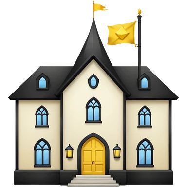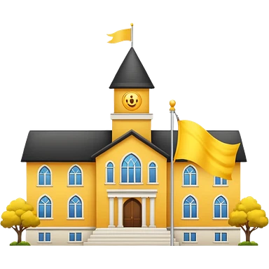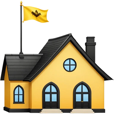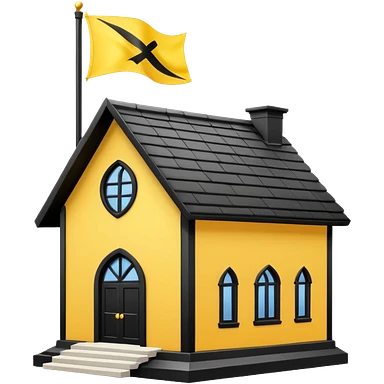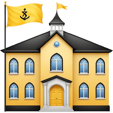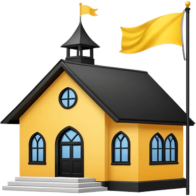 simple school, white background, magic school, black roof, with a big flag, big flag on a roof, big yellow flag, white school emoji