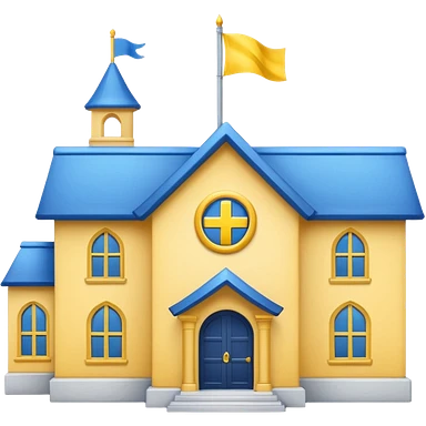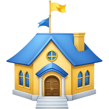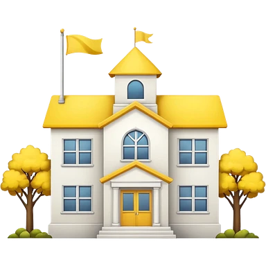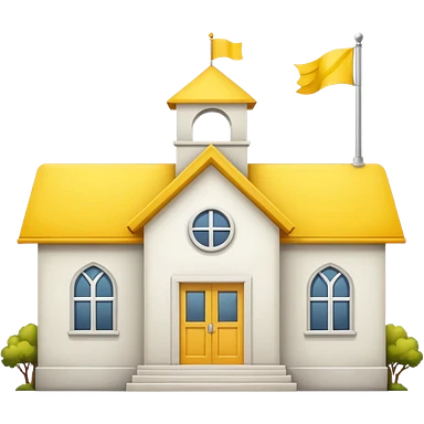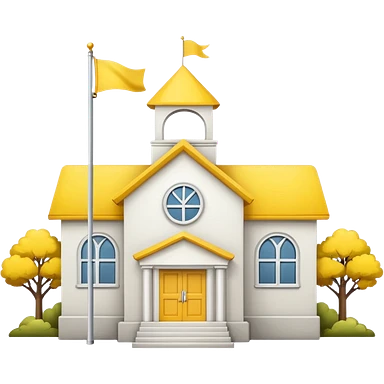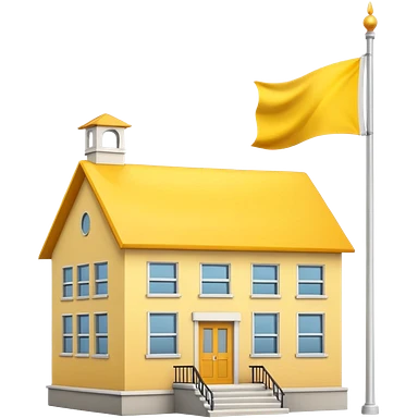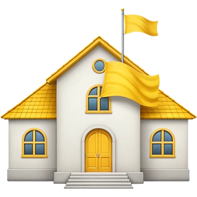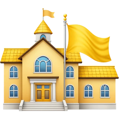 white background, magic school, with a flag, flag on a roof, yellow flag, white school emoji