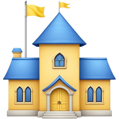 white background, magic school, with a big flag, big flag on a roof, big yellow flag, white school emoji