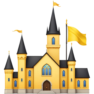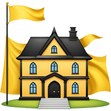 simple magic school, white background, magic school, black roof, with a big flag, big flag on a roof, big yellow flag, white school emoji